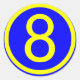 Sticker Rond numéro 8 dans un cercle, arrière - plan bleu