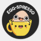 Sticker Rond Oeuf spresso Drôle Oeuf Coffee Pun BG foncé