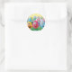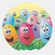 Sticker Rond Oeufs de Pâques avec des visages dans l'herbe