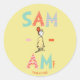 Ne le frappez pas avant de l'essayer, il se peut que vous l'aimiez ! GREEN EGGS AND HAM est une histoire classique du Dr Seuss où Sam-I-Am essaie d'amener son ami à essayer des oeufs verts et du jambon, et il finit par les aimer. Regardez Sam-I-Am tenant une pancarte avec son nom dessus.