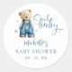 Set the scene for a joyful celebration with these blue jean baby themed baby shower stickers. Featuring an adorable bear in denim dungarees, and playful blue stars scattered across a modern baby shower template.