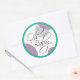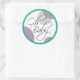Un autocollant de baby shower sophistiqué et neutre pour les faveurs des fêtes, les enveloppes, les sacs cadeaux et plus encore. Ce design est composé d'une belle police de script et d'un grand arrière - plan de points dispersés dans des tons lilas et gris clair bordé dans un cadre aqua. Obtenez l'invitation de baby shower correspondante ici :