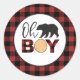 Sticker Rond Oh Boy Bear Buffalo Plaid Baby shower