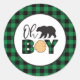 Sticker Rond Oh Boy Bear vert Buffalo Plaid Baby shower