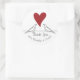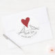 Le design du produit présente deux colombes blanches perchées ensemble et regardant vers un cœur rouge. Les colombes blanches sont des symboles d'amour, de chance, de paix et de prospérité. Cette illustration simple d'oiseaux crée des autocollants de remerciement mignons, modernes et uniques pour un mariage, un anniversaire ou toute autre occasion romantique !