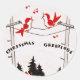Image vintage de deux oiseaux mignons sur une ligne téléphonique qui se souhaitent mutuellement "voeux de Noël" Photo en rouge, noir et blanc.