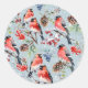 Sticker Rond Oiseaux de Noël Red Bullfinch Berries & Pine Cônes