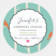 Un autocollant à bougie/savon avec une illustration de bouleaux avec des oranges sur leurs branches. Arrière - plan vert rétro. Disposé sur le dessus est un cercle à échalotes avec vos infos à l'intérieur.