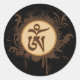 Symbole Om Tibétain en brun et orange est le centre de ce design Om Mani Padma Hum avec le symbole Om au centre du cercle bronzé et orange avec arrière - plan floral marron! Bouddhisme tibétain audacieux mais sobre Cadeaux Om pour les amateurs de yoga et de bouddhistes !