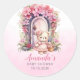 On peut attendre l'aquarelle rose Baby shower Classic Round Sticker