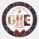Sticker Rond OneDerful 1er Birtdhay Burgundy Classic Plaid