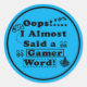 Sticker Rond Oops i almost said a gamer word Blue