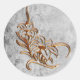 Un sceau d'enveloppe de faire-part de mariage, collant rond avec une touche vintage distincte, avec une décoration élaborée en cuivre/or et un arrière - plan de parchemin gris à l'aspect antique.