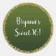Sticker Rond Or Dore Pailleté Vert Glamour Étincelante Soirée