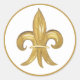 Cet autocollant rond présente une fleur de lis dorée couleur eau au centre sur un fond blanc éclatant avec une bande d'or autour du bord. Ces autocollants se coordonnent avec les autres produits de ma collection Many Ado About Nothing.