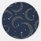 Sticker Rond Or Fumé Bleu Mystique Filigrane Lune Fête Céleste