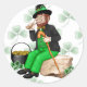 L'adorable Irlandais Leprechaun fumant sa pipe pendant qu'il se repose à côté de son pot d'or. Un design enchanteur pour la St. Patrick's Day ou toute l'année.