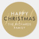Écriture moderne élégant joyeux autocollant rond or pour vous de personnaliser avec votre message de vacances et nom de famille. Vous pouvez customiser la couleur arrière - plan pour correspondre à votre thème de vacances. Conçu par Thisisnotme©