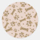 Sticker Rond Or Pailleté Beige Rose Patte D'Os Chien Chiot
