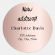 Nous / J'ai déplacé l'étiquette d'adresse de retour. Personnalisez et ajoutez votre nom et votre nouvelle adresse. Un arrière - plan rose en or.