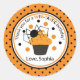 Entrez dans l'esprit éffrayant avec cet autocollant rond de polka orange et noir Halloween spider cupcake anniversaire 1.5" ! Adorable et festif, il présente une araignée mignonne assise sur un cupcake coloré parfait pour ajouter une touche de plaisir à la célébration de votre petit.
