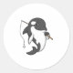 Sticker Rond Orca comme Fisher avec une barre de pêche