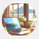 Sticker Rond Ordinateur portable & Latte Lifestyle - Travail, S