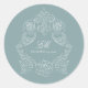 Sticker Rond Ornement de blason de monogramme mariage bleu pous