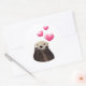Sticker Rond Otter mignonne avec Coeurs d'Amour Rose