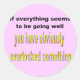 Oublié quelque chose T-Shirts & More Caractéristiques texte Si tout semble aller bien, vous avez visiblement oublié quelque chose.. Design humour amusant. Amusez-vous avec l'un de nos grands T-Shirts, cadeaux, et plus encore. Sortez de la foule avec Mind Design Grafx™ Design tendance, Hip designs. T-shirts.. Sweatshirt... Sweat - shirt à capuche et plus. Plus de 250 choix de vêtements seuls. Sélectionnez le style et la couleur... cliquez simplement sur le lien "Voir tout" dans la zone Choisir votre style et votre couleur. De plus, Invitations, Cartes, Magnets, Affiches, Stickers, Casquettes, Sacs Cadeaux, Boutons, porte - clés. Posters, tapis de souris, Mugs et bien plus encore. N'oubliez pas de consulter les options "Personnalisable". Voici ce que vous pouvez faire : Texte - ajouter, modifier du texte, modifier la couleur et la police du texte; Modifier le style, la taille et la couleur arrière - plan; Déplacer la conception; redimensionner la conception; ajouter votre propre photo. Ajoutez donc votre propre flot personnel à ce design humoristique. Vous pouvez être sûr d'acheter chez Mind Design Grafx™ avec notre garantie de remboursement de 30 jours. Des produits design de haute qualité à des prix abordables.