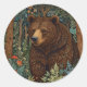 Sticker Rond Ours brun rétro oeuvre boho forêt