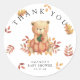 "autocollant de Merci". Célébrez avec cette soirée baby shower à thème ours en peluche ! Aquarelle mignon ours en peluche avec un citrouille d'automne dans ses pattes est assis sur le feuillage d'automne.