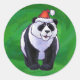 Sticker Rond Ours de panda à Santa Hat sur Vert
