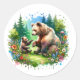 Sticker Rond Ours et cubes d'aquarelle