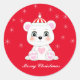 Caricature d'ours blanc blanc de Noël et flocons de neige sur Stickers rouge.
