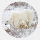 Sticker Rond Ours polaire femelle et deux petits
