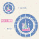 Joli bleu rond Enveloppe de vacances avec deux ours polaires décorant un sapin de Noël. Personnalisez-le avec le nom et l'adresse de votre famille. © ArianeC Illustrations-Tous droits réservés