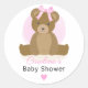 Sticker Rond Ourson avec un joli nœud rose pour Baby Shower Fil