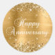 Sticker Rond Pailleté Or Feuille Joyeux Anniversaire