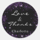 Un fond noir classique. Décoré de fausse poussière de paillettes violettes. Personnalisez et ajoutez votre prénom. Avec le texte : Amour & Remerciements.
