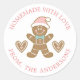 Un mignon gâteau en pain d'épice rose orne cette maison faite avec un autocollant d'amour. Personnalisez-le avec votre nom. Un autocollant amusant pour un cadeau de Noël fait maison! Conçu pour vous par Blackberry Boulevard.