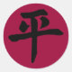 Autocollant rond avec une image du caractère chinois pour la paix sur rouge. Voir les confettis assortis, étiquette préférée, étiquette et papier d'emballage. Voir l'ensemble de la collection Sticker des Lumières dans les INVITATIONS | Section Stickers & Étiquettes.
