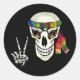Donnez une chance à la paix avec ce crâne avec un bandeau psychédélique et des yeux enflammés tenant un signe de paix. Ce design de paix peut être trouvé sur les vêtements, autocollants, tasses, magnets, cartes et plus encore.