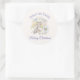 Un autocollant pastoral de Noël sucré. Conçu avec un ange serein aux ailes jaunes tenant un crook berger. Assis à côté de 2 agneaux blancs moelleux. L'aquarelle s'écarte autour de l'image en se mélangeant à un arrière - plan blanc en coquille d'oeuf. Texte : Paix sur Terre, Joyeux Noël.