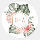 Sticker Rond Palme tropicale et Monogramme Mariage Rose
