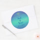 Sticker Rond Palme tropicale Muté Bleu Vert Plage Mariage Océan