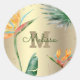 Sticker Rond Palme Tropique Moderne Monogramme Script Gold Foil