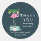 Des autocollants avec l'illustration d'un flamand rose avec des palmiers verts derrière et un bouquet succulent fleuri décoratif en contrebas. Tropical et joli. L'arrière - plan est bleu foncé.