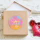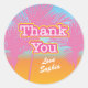Conception amusante avec un "Merci" rose et jaune et le nom de la future mariée en dessous. Ce dessin coloré avec une illustration mignonne de palmiers roses est un excellent ajout à une fête de bachelorette pour les cadeaux.