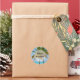Mariage merci autocollants avec une belle et tranquille photo de 2 palmiers sous un ciel bleu vif. Situé sur une plage tropicale isolée avec une eau turquoise et calme.
